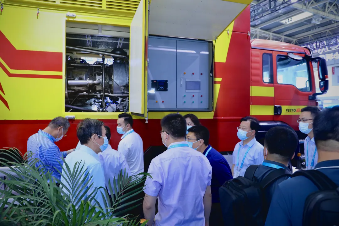 在本次展會上,中油科昊誠邀客戶前來參觀和交流。中油科昊在現(xiàn)場展示了最新研發(fā)成果-11MW級車載燃?xì)廨啓C(jī)電源車,該電源車的成功研制,使所有油田環(huán)境下的電驅(qū)壓裂成為可能,為高效率、低成本、智能化的并場作業(yè)提供穩(wěn)定、可靠的電力支持、同時(shí)該電源車也能用于自然災(zāi)害、應(yīng)急救援、部隊(duì)野戰(zhàn)環(huán)境的供電源車也能用于自然災(zāi)害、應(yīng)急救援、部隊(duì)野戰(zhàn)環(huán)境的供電。